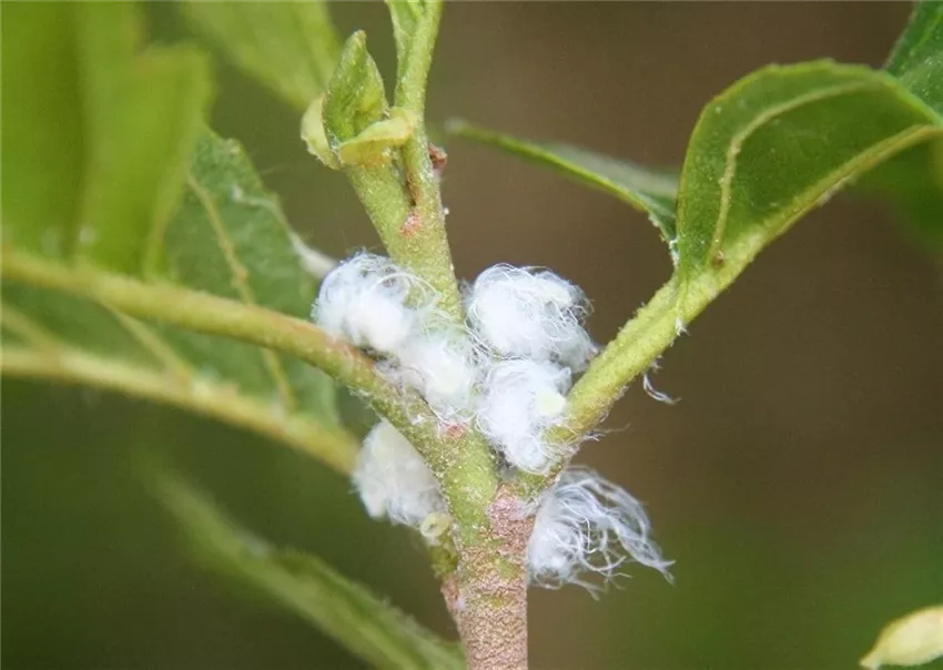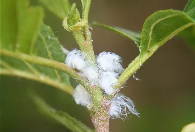 Die Tiere scheiden Honigtau aus. Bei starkem Befall kann es zu Triebstauchungen kommen.