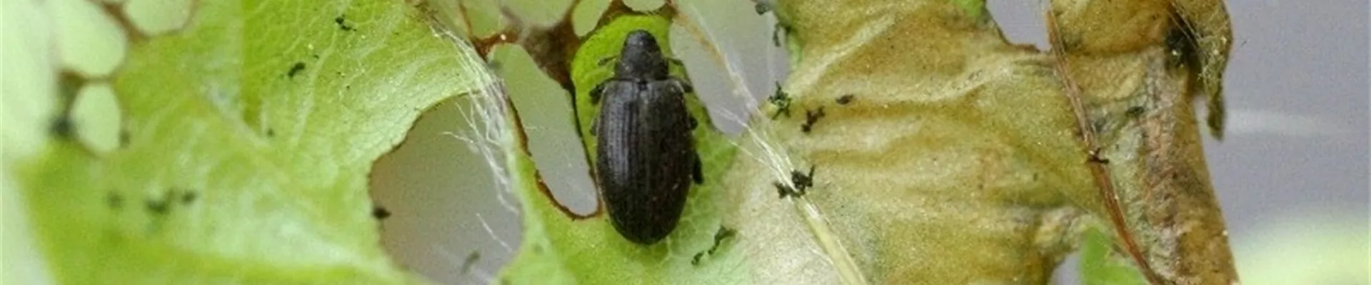 Im Sommer schlüpft die neue Käfergeneration und frisst erneut an den Blättern. Die Käfer des Vorjahres sterben ab.