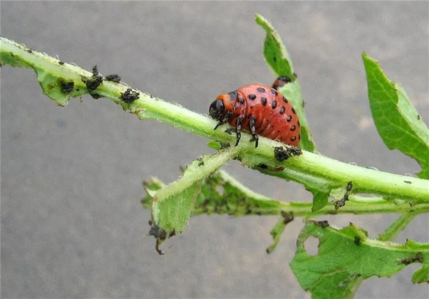 Der Kartoffelkäfer (Leptinotarsa decemlineata) überwintert im Boden. Im Frühjahr beginnt er mit seiner Fraßtätigkeit. Die orangegelben, ovalen Eier werden in Gruppen an die Blattunterseite gelegt. Aus ihnen schlüpfen die gefräßigen Larven.