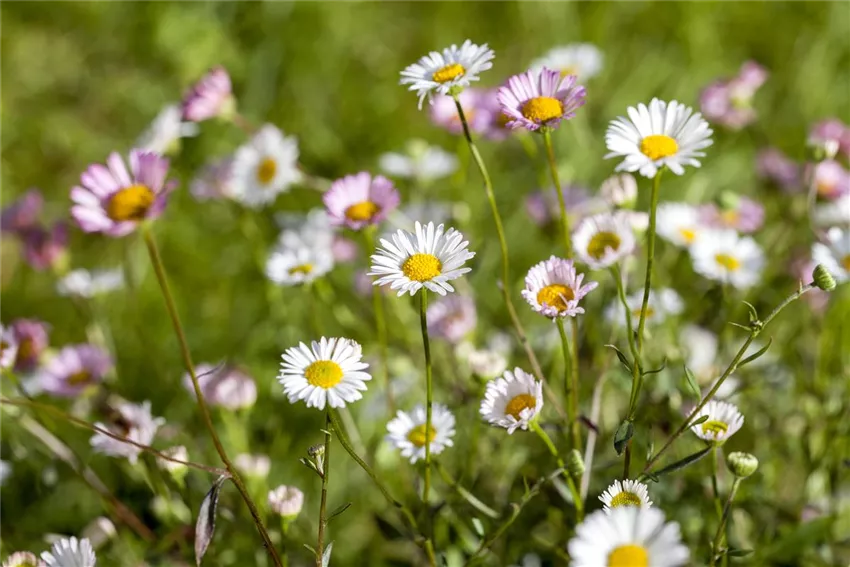 Gänseblümchen sind ebenso unterschätzt wie schön. Sie bringen im Rasen die typischen weiß-gelben Tupfer und das oft den ganzen Sommer über. Sie begeistern Kinder wie Erwachsene und werden gern als Schmuck auf Speisen oder Getränken geerntet.