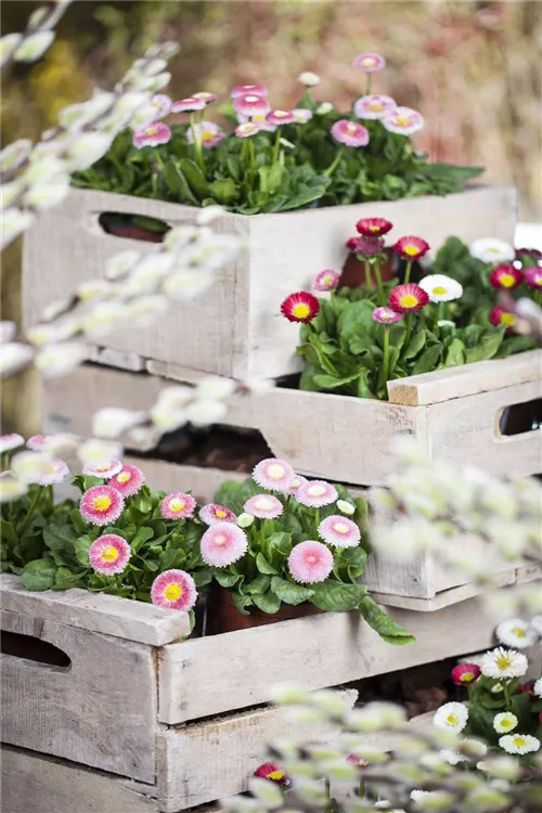 Je nach Sorte, bildet Bellis perennis Blüten in verschiedenen Farben.