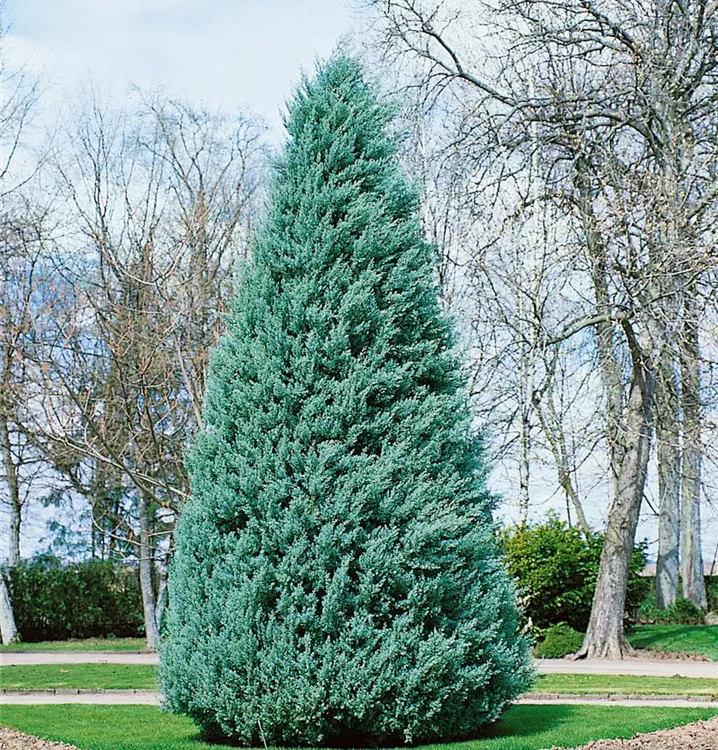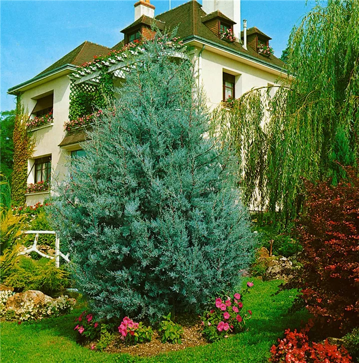Blaue Arizona-Zypresse 'Glauca' ist ein kegelförmig wachsender Kleinbaum. Sie erreicht gewöhnlich eine Höhe von 3 - 5 m und wird ca. 1,2 - 1,5 m breit.