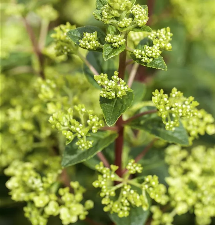 Rispenhortensie ist ein aufrecht wachsender Strauch. Sie erreicht gewöhnlich eine Höhe von 3 - 4 m und wird ca. 2 - 3 m breit.