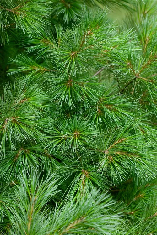 Die Weymouths-Kiefer 'Blue Shag' ist immergrün. Ihre Nadeln sind blau-grün, weich.
