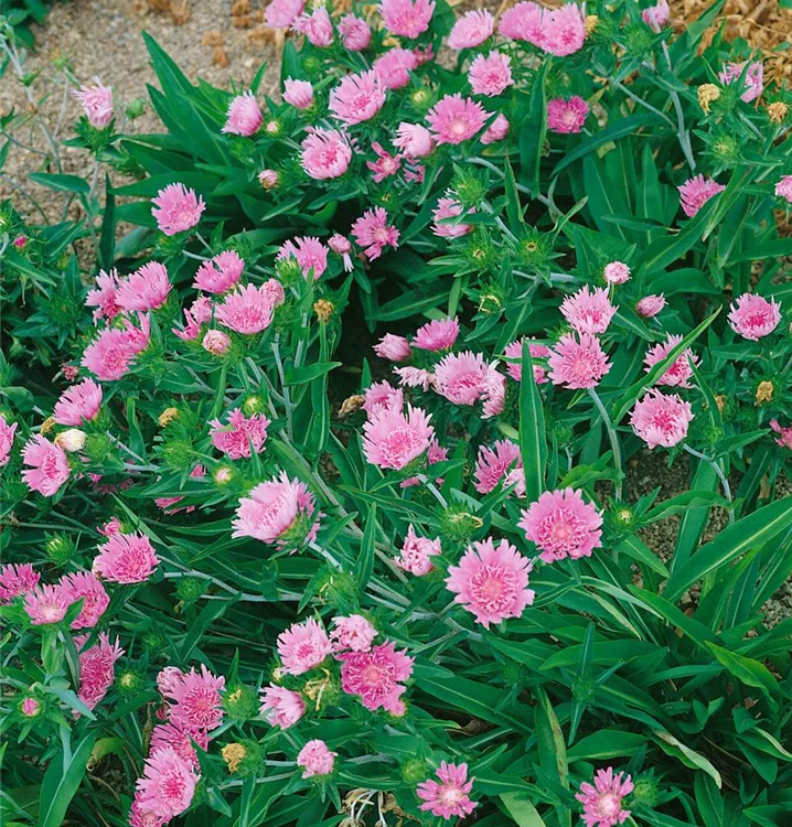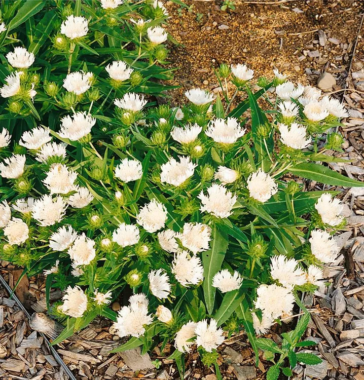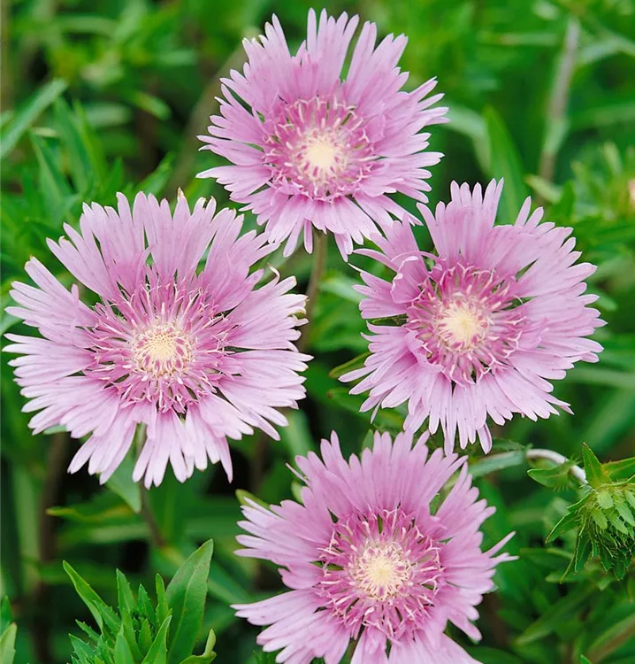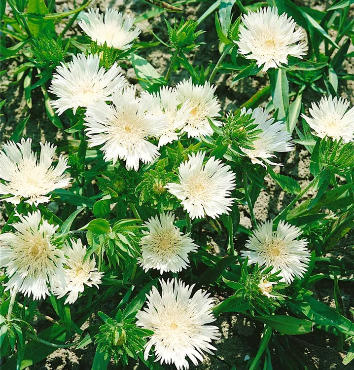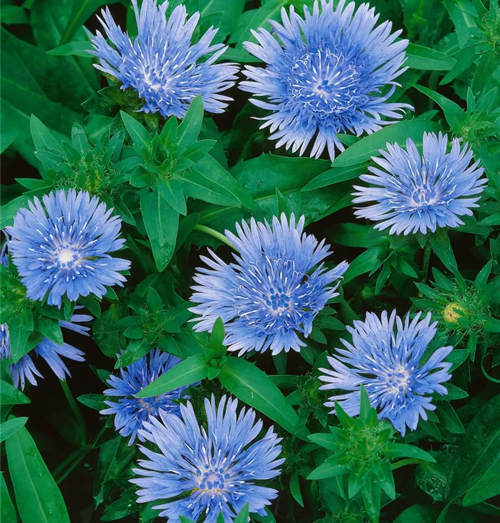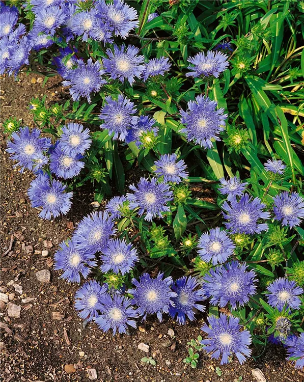 Die Kornblumenaster (Stokesia laevis) ist eine aufrechte Staude, die, je nach Sorte, körbchenartige Blüten in verschiedenen Farben bildet. An einem sonnigen Standort mit durchlässigem Boden erreicht sie gewöhnlich eine Höhe von ca. 30 cm und wird ca. 40 cm breit. Die Kornblumenaster ist gut frostverträglich.