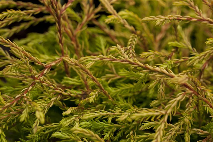 Der Lebensbaum 'Golden Tuffet' ist immergrün. Seine Nadeln sind goldgelb, schuppenförmig.