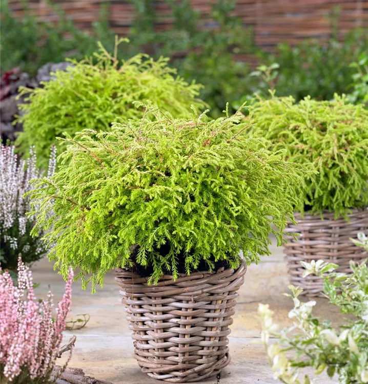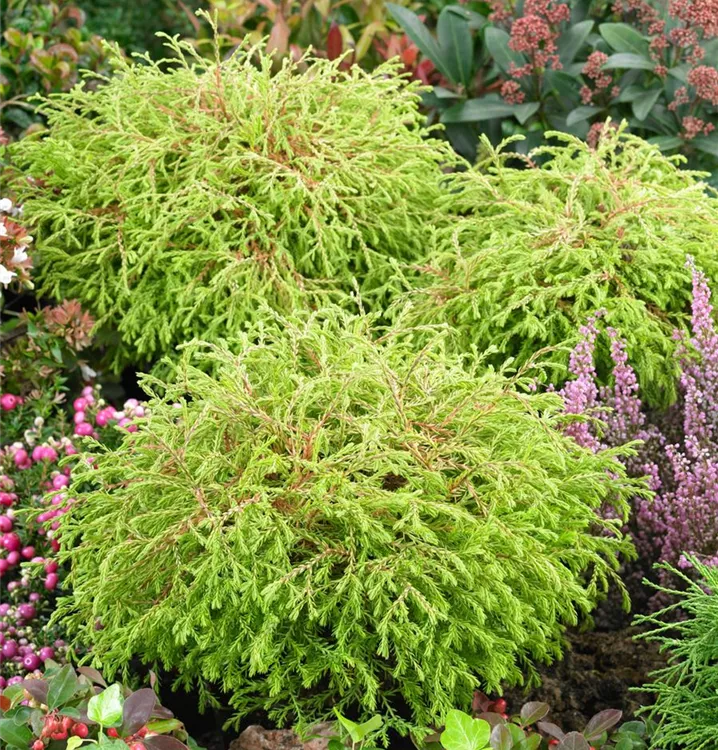Lebensbaum 'Golden Tuffet' ist ein kegelförmig, flach und kugelförmig wachsender Baum oder Kleinstrauch. Er erreicht gewöhnlich eine Höhe von 70 - 80 cm und wird ca. 0,8 - 1 m breit. Langsam wachsend. In der Regel wächst er 25 - 30 cm pro Jahr.