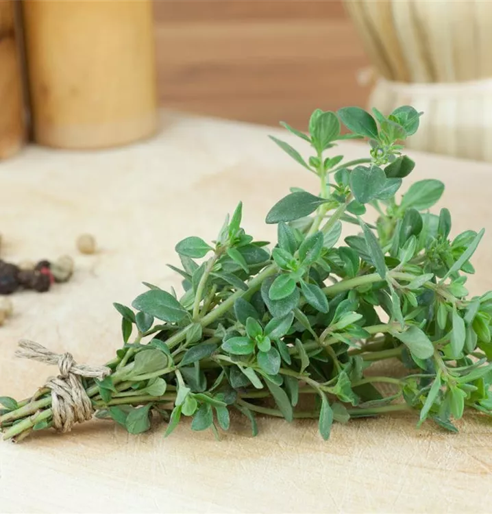 Der Zitronen-Thymian 'Limone' (Thymus x citriodorus) ist eine Kräuterpflanze mit einem aromatischen Geschmack. Seine hellgrünen Blätter sind eiförmig. Für das optimale Wachstum des Zitronen-Thymians 'Limone' werden ein sonniger Standort und durchlässiger, nährstoffreicher Boden benötigt.