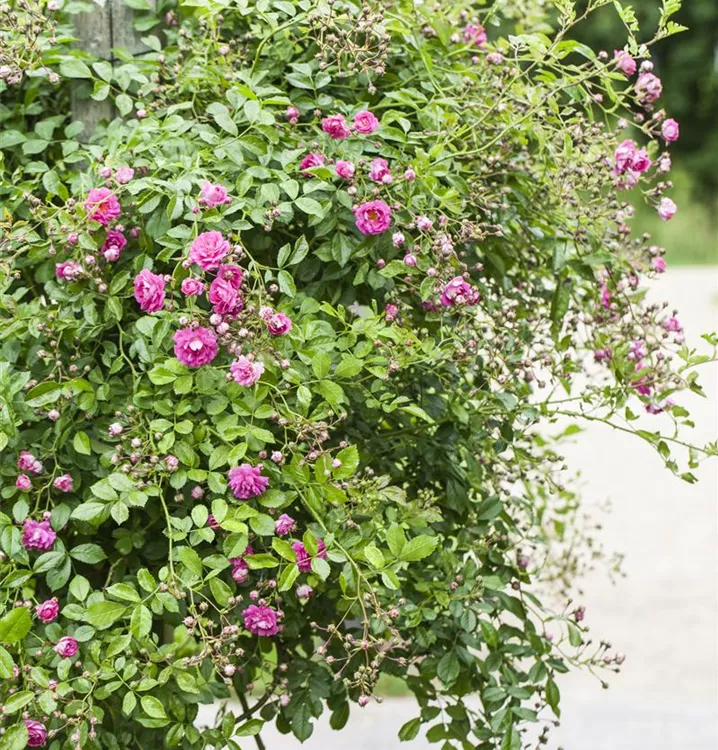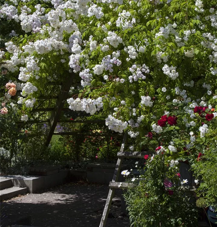 Nostalgie pur macht sich bei der Betrachtung alter Gärten breit. Diese werden meist von einem Spalier aus Kletterrosen dominiert. Schlingrosen haben sich nicht nur bei Romantikern ihren Platz zurückerobert. Wuchsfreudig erklimmen sie Bäume und Mauern, auch Hauswände sind kein Hindernis. Man denke nur an das märchenhafte Dornröschenschloss. Mit ihrem himmlischen Duft begleiten uns die Kletterrosen durch den Sommer. Im Herbst werden die Pflanzen zurückgeschnitten. Ein Winterschutz ist notwendig.
