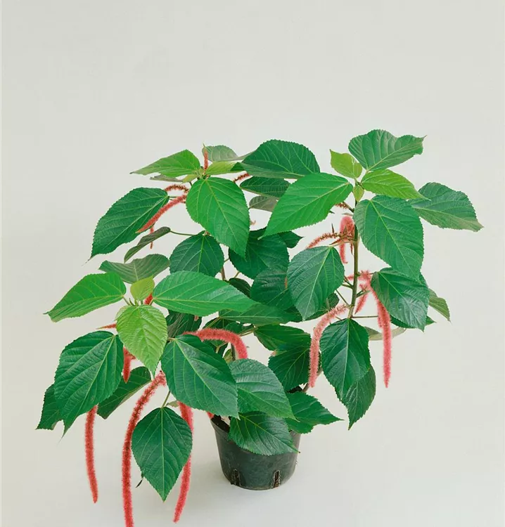 Das Katzenschwänzchen (Acalypha hispida) ist eine rot blühende Pflanze, die spitz eiförmige, dunkelgrüne Blätter trägt. Diese aufrechte Pflanze gedeiht am besten an einem halbschattigen Standort.
