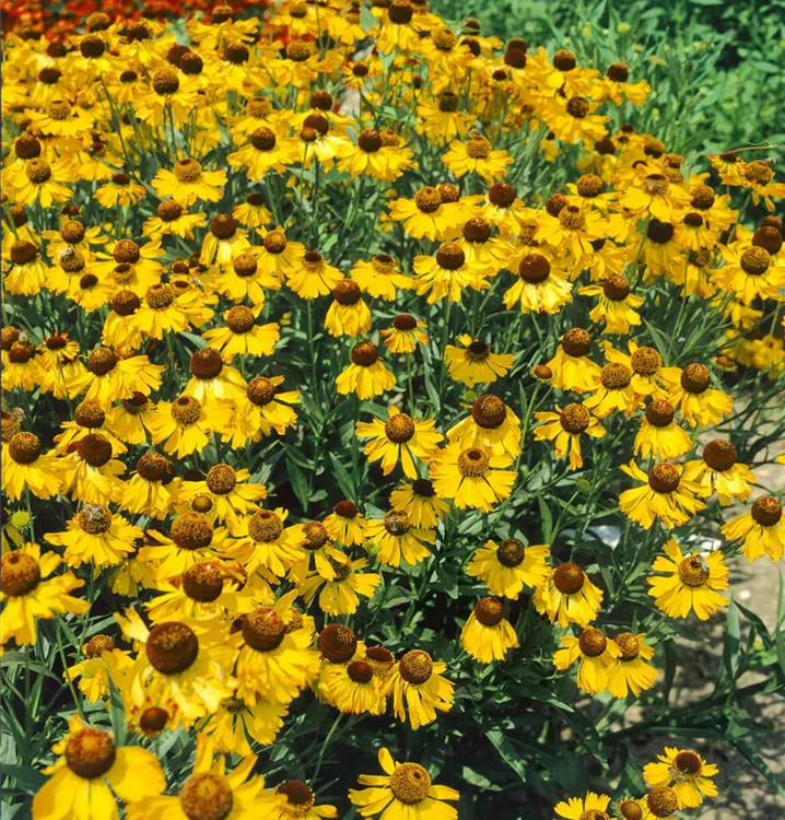 Die Sommer-Sonnenbraut (Helenium bigelovii) ist eine lockere, aufrechte Staude, die von Juni bis August gelbe, körbchenartige Blüten bildet. An einem sonnigen Standort mit durchlässigem, nährstoffreichem Boden erreicht sie gewöhnlich eine Höhe von ca. 70 cm und wird ca. 50 cm breit. Die Sommer-Sonnenbraut ist gut frostverträglich.