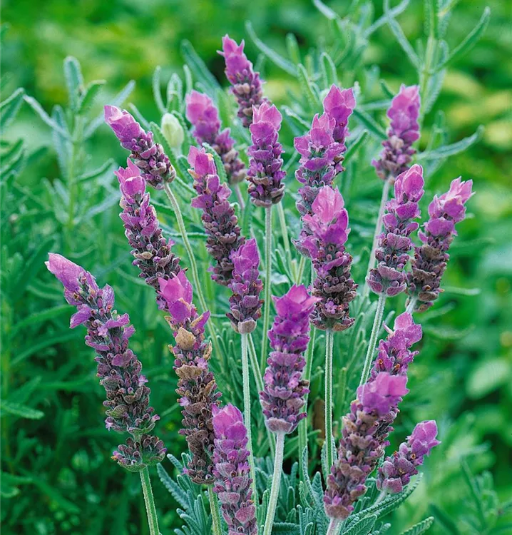 Lavandula dentata bildet lilafarbene Blüten ab Juni.