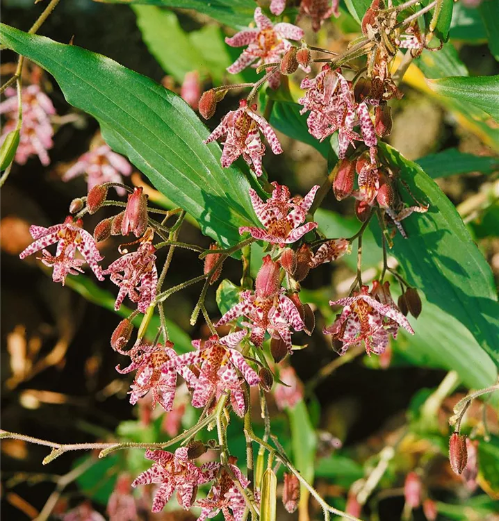 Die Japanische Krötenlilie weist eine gute Frosthärte auf.